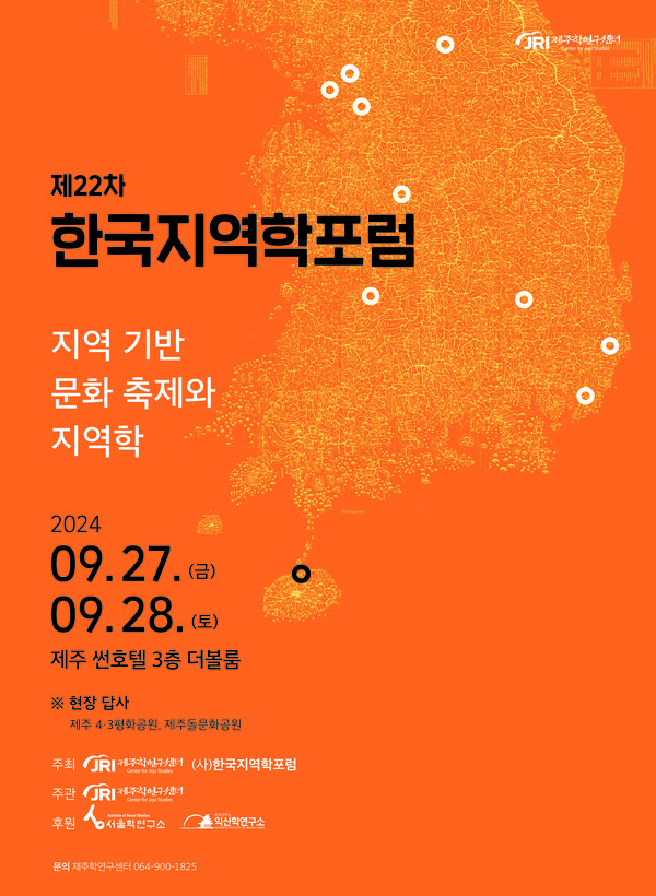 포럼에는 한국지역학포럼 회원들과 제주 지역학 전문가들이 참석하며, 지역 축제를 문화 자원으로서 가치를 창출할 수 있는 방안에 대해 모색할 예정이다.