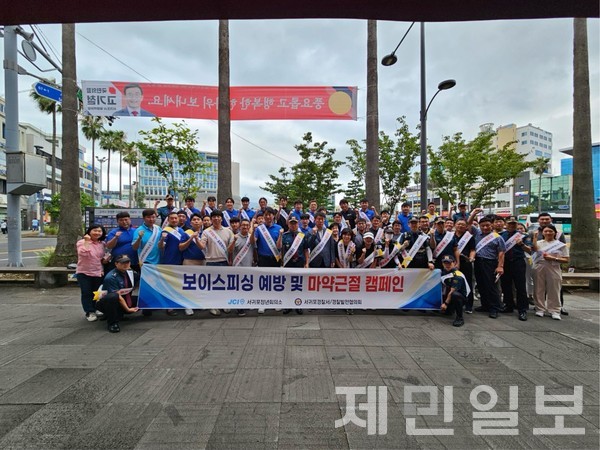 서귀포JC(서귀포청년회의소·회장 조성민)는 지난 10일 서귀포경찰서(서장 오훈), 경찰발전협의회(회장 김수삼)와 함께 보이스피싱예방 및 마약근절 캠페인을 진행했다. 또한 이날 서귀포JC는 시민들에게 보이스피싱 및 금융범죄 예방과 마약으로 인한 심각성을 알리는 등 적극적인 홍보활동을 실시했다.