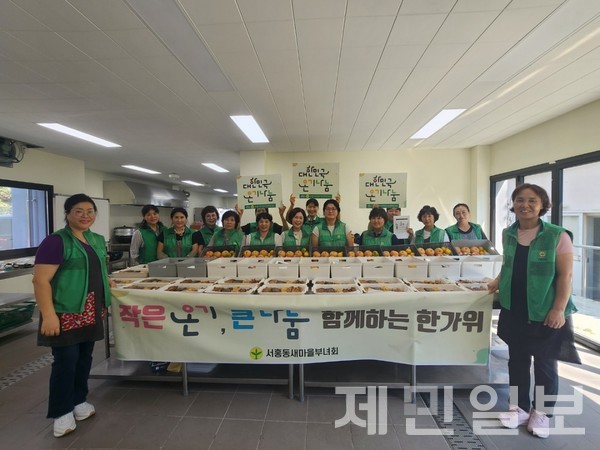 서홍동새마을부녀회(회장 장은진)에서는 지난 13일 부녀회원 20여명이 참석한 가운데 관내 독거노인 가구 및 취약계층 20가구를 대상으로 ‘추석 한상차림’나눔 활동을 추진했다.