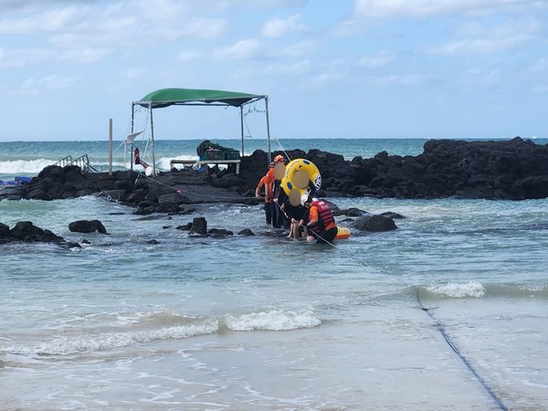 23일 제주도소방안전본부에 따르면 이날 오후 3시25분께 제주시 김녕해수욕장에서 물놀이를 하던 관광객이 조류에 휩쓸려 떠내려갔다는 신고가 접수됐다.