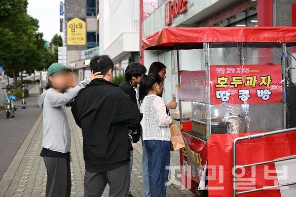 이날 쌀쌀한 날씨에 호두과자 등 겨울 간식을 파는 노점상 앞으로 손님들이 모였다.
