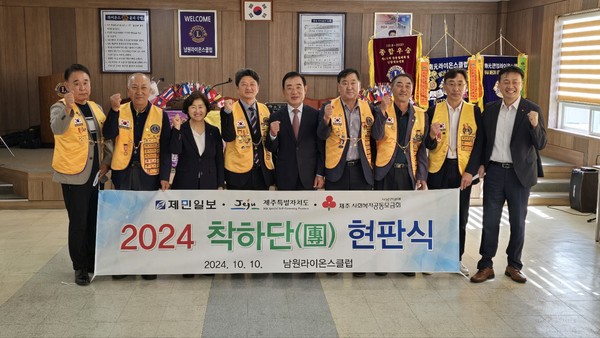 특히 남원라이온스클럽은 이날 착하단 가입 현판식에 이어 제주사회복지공동모금회가 진행하는 나눔리더스클럽에 제주 6호 회원으로 가입하고 앞으로 3년 내 성금 1000만원 이상을 기탁하기로 약속했다.