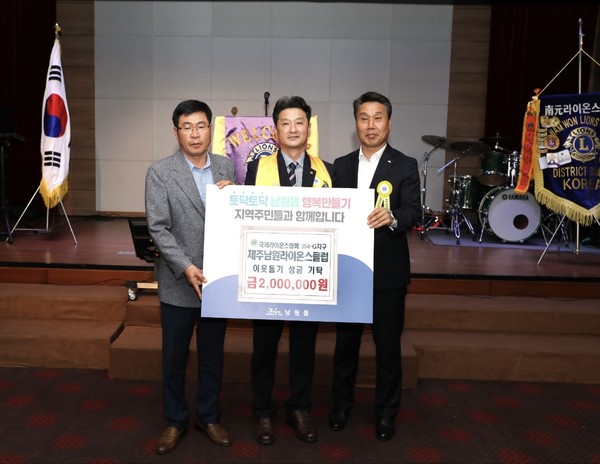 남원라이온스클럽(회장 김민철)은 지난 13일 금호리조트에서 개최된 제46회 창립기념식에서 관내 어려운 이웃을 돕는데 사용해달라며 성금 200만원을 기탁했다.