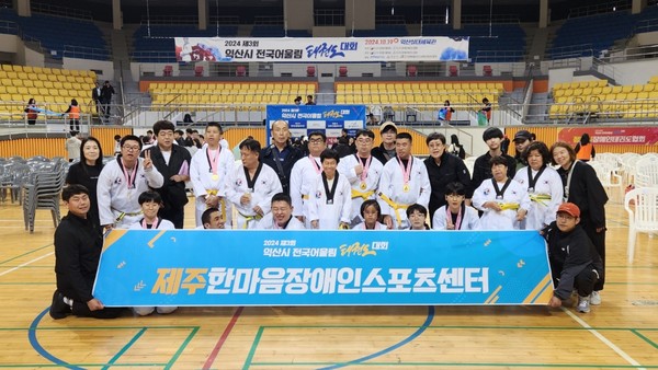 서귀포 한마음장애인스포츠센터(센터장 강누리) 선수단이 지난 19일 익산 실내체육관에서 개최된 ‘2024 제3회 익산시 전국 어울림 태권도대회‘에서 선수단 전원이 입상하는 성과를 달성했다.