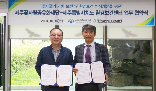 제주도 환경보건센터(센터장 홍성철)와 제주곶자왈공유화재단(이사장 김범훈)은 지난 16일 곶자왈의 가치 보전을 바탕으로 도민 환경보건 인식 개선 등을 위한 업무협약을 체결했다고 23일 밝혔다.