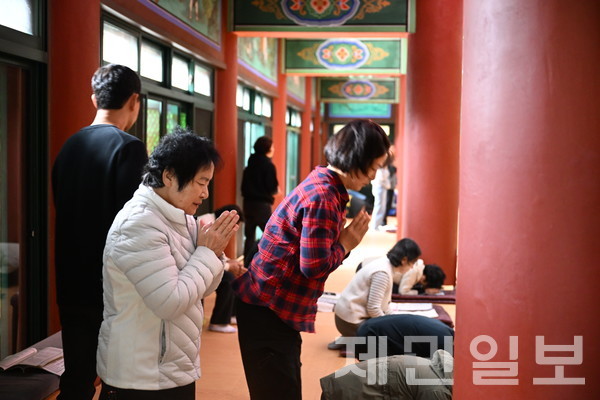 2025 대학수학능력시험을 나흘 앞둔 10일 오전 제주시 천왕사에서 수험생 자녀를 둔 학부모들이 자녀의 성공적인 시험을 위해 기도하고 있다. 김은수 기자 김은수 기자 ibbni29@jemin.com 다른기사 보기 저작권자 © 제민일보 무단전재 및 재배포 금지 댓글삭제 삭제한 댓글은 다시 복구할 수 없습니다. 그래도 삭제하시겠습니까? 비밀번호 닫기 기사 댓글 0 댓글 접기 댓글입력 권한이 없습니다. 댓글 내용입력 비회원 로그인 이름 비밀번호 댓글 내용입력 댓글쓰기 계정을 선택하시면 로그인·계정인증을 통해 댓글을 남기실 수 있습니다. 회원 로그인 이름 비밀번호 자동등록방지 로그인 옵션 창닫기