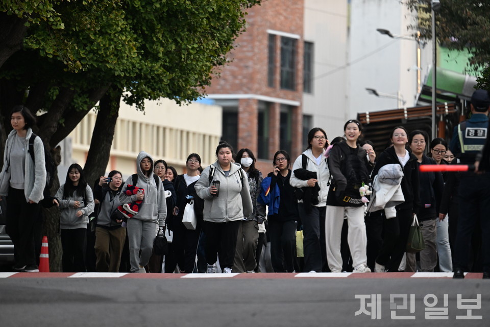 2025학년도 대학수학능력시험일인 14일 오후 제주여자고등학교에서 시험을 마친 수험생들이 시험장을 빠져나오고 있다. 김은수 기자 ibbni29@jemin.com 다른기사 보기 저작권자 © 제민일보 무단전재 및 재배포 금지 댓글삭제 삭제한 댓글은 다시 복구할 수 없습니다. 그래도 삭제하시겠습니까? 비밀번호 닫기 기사 댓글 0 댓글 접기 댓글입력 권한이 없습니다. 댓글 내용입력 비회원 로그인 이름 비밀번호 댓글 내용입력 댓글쓰기 계정을 선택하시면 로그인·계정인증을 통해 댓글을 남기실 수 있습니다. 회원 로그인 이름 비밀번호 자동등록방지 로그인 옵션 창닫기