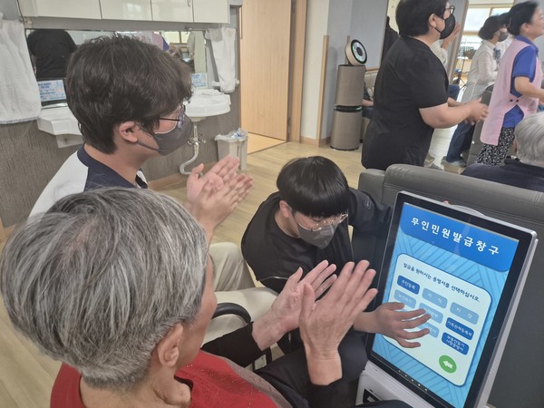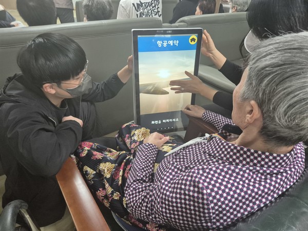 제주제일고등학교(교장 고동현)는 최근 다올요양원을 방문해 키오스크(무인단말기) 사용이 어려운 어르신들을 위해 스마트 교육 봉사활동을 전개했다.