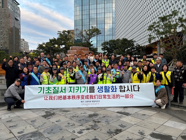 제주드림타워 복합리조트(대표이사 회장 김기병)는 20일 제주시 노형오거리 일대에서 지역내 7개 단체와 함께 시민·외국인을 대상으로 기초질서 지키기 캠페인을 펼쳤다.