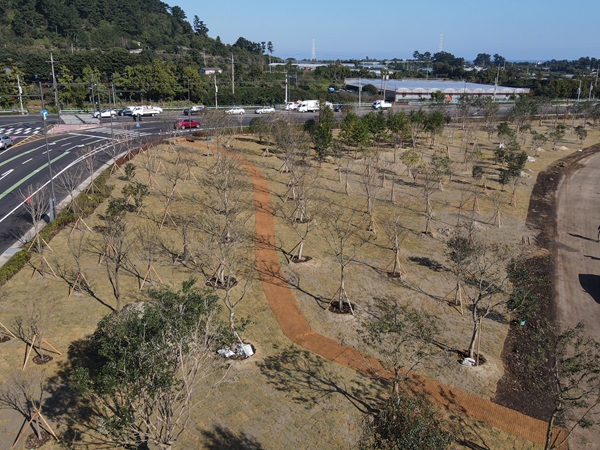 올해 제주시는 사업비 25억원을 투입해 추진한 애조로(회천~신촌) 구간 기후 대응 도시 숲 조성을 마무리했다. 제주도의 기후 대응 도시 숲 조성 일환이다.