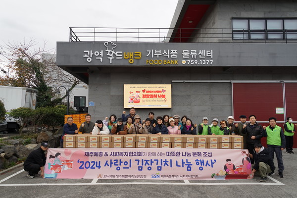(사)한국예총 제주도연합회(회장 김선영, 제주예총)는 13일 제주도사회복지협의회에서 어려웃 이웃을 돕기 위한 ‘2024 김장김치 나눔 행사’를 진행했다.