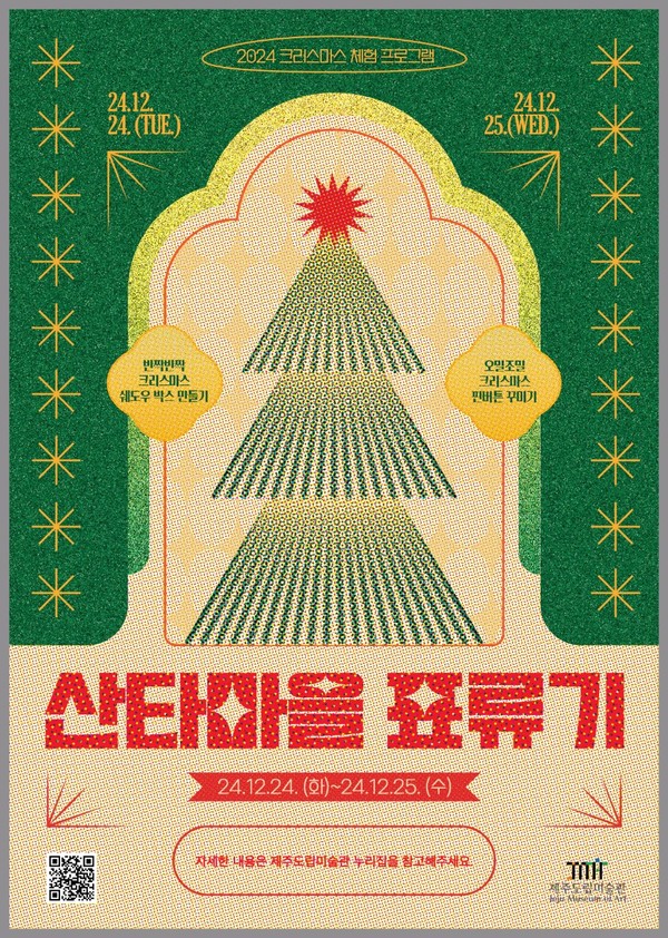 이종후 제주도립미술관장은 “크리스마스에 가족과 함께 미술관에 방문해 전시를 관람하고 체험 프로그램에도 참여해 특별한 추억을 만들기를 바란다”고 전했다.