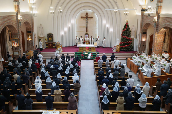 오 지사는 지난 24일 오후 8시 천주교 제주교구 주교좌 중앙성당을 찾았다. 제주교구장 문창우 비오 주교가 주례한 '성탄 대축일 밤미사'에서 신도들과 함께 예수 탄생의 의미를 되새겼다.