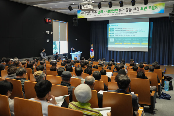 제주도는 지난 19일 오후 제주문학관 대강당에서 '지역안전지수 범죄·생활안전 분야 등급 개선 도민 토론회'를 개최했다.