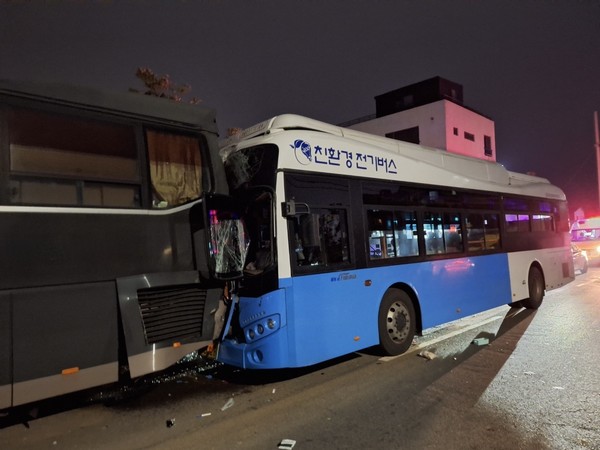 15일 제주소방안전본부에 따르면 지난 14일 오후 8시49분께 제주시 한림읍의 한 도로에서 달리던 시내버스가 주차된 버스를 들이받았다는 신고가 접수됐다.