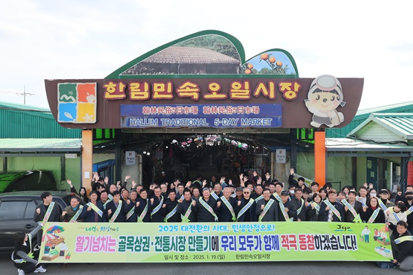 제주시는 19일 한림 오일시장에서 김완근 제주시장을 비롯한 공직자와 자생 단체, 상인회 공동으로 전통시장 소비 촉진 캠페인을 전개했다.