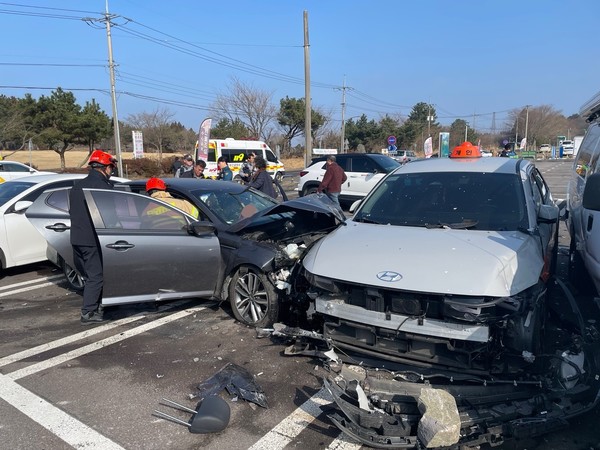 23일 제주소방안전본부에 따르면 이날 오후 1시35분께 제주시 오등동 관음사 주차장에서 차량 4대가 부딪혔다는 신고가 접수됐다.
