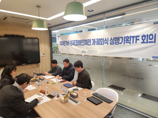 제주도는 26일 제주웰컴센터에서 전국체전 실행기획 전담팀(TF) 3차 회의를 열고 대회 핵심 행사로 꼽히는 개·폐회식 방향과 주요 기획안을 논의했다.