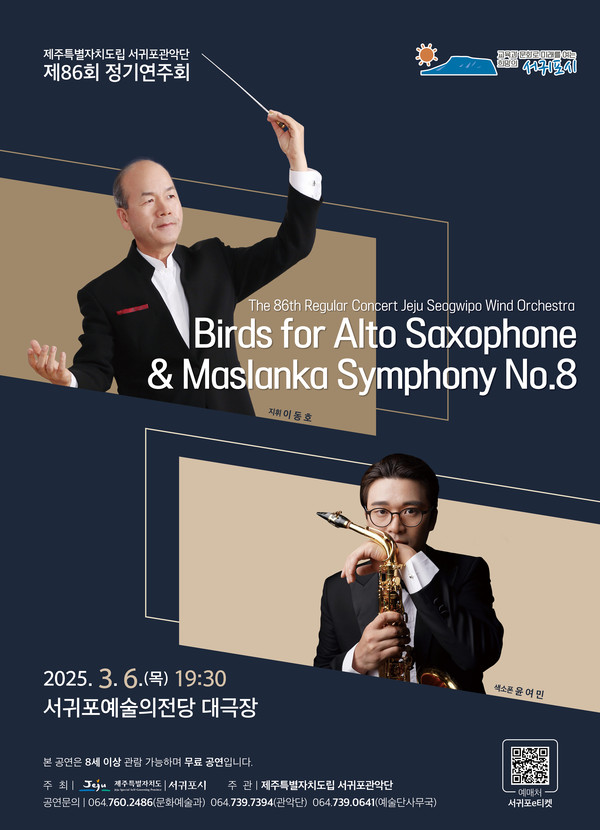서귀포시는 오는 3월 6일 서귀포예술의전당 대극장에서 '제주특별자치도립 서귀포관악단 제86회 정기연주회'를 개최한다.