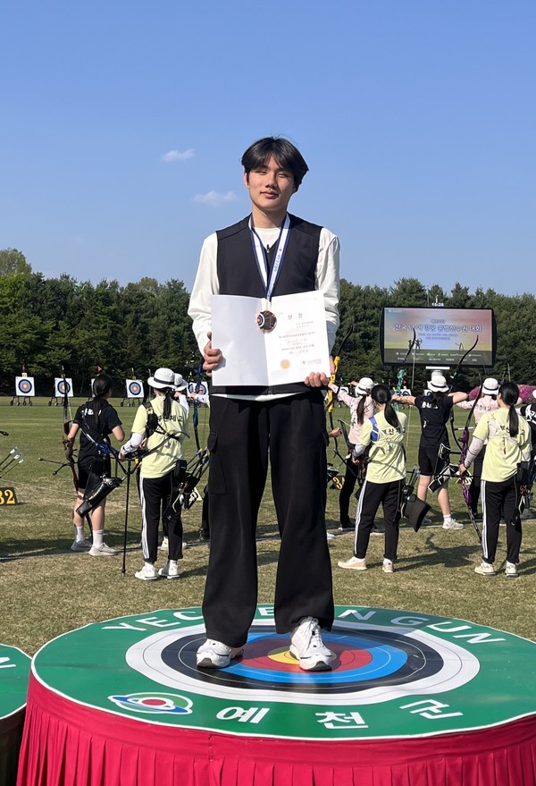 지난 24일부터 다음달 2일까지 펼쳐지는 이번 대회에서 최갑재는 중등부 컴파운드 부문 50m 거리별 경기에서 치열한 경쟁 끝에 3위를 차지하며 동메달을 획득하는 영예를 안았다.
