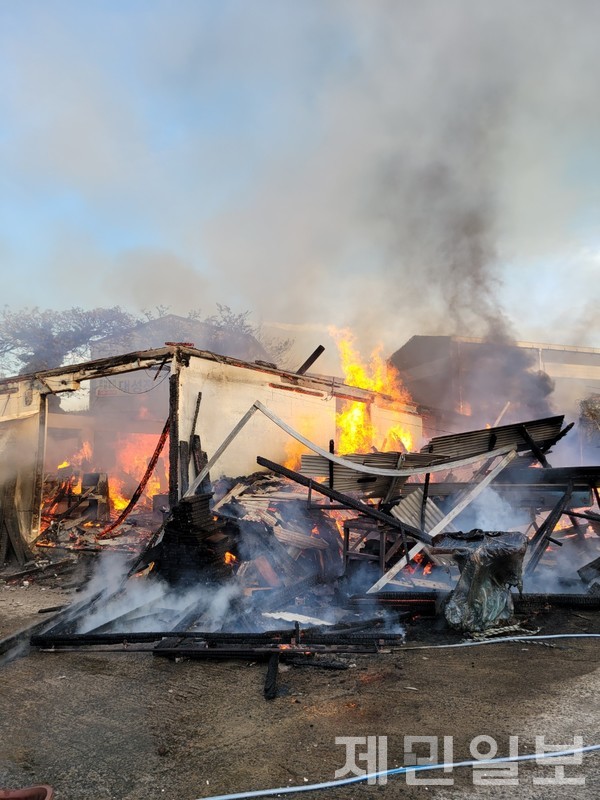 30일 제주소방안전본부에 따르면 이날 오후 6시19분께 제주시 화북공업단지 내에서 불이 났다는 신고가 접수됐다.