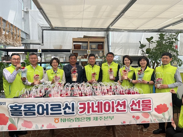 NH농협은행 제주본부(본부장 고은정)는 어버이날을 앞두고 7일 장애인복지시설 일배움터에서 도내 홀로 사는 어르신을 대상으로 카네이션 꽃바구니 선물 행사를 진행했다.