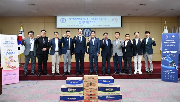 제주도체육회(회장 신진성)와 대상웰라이프㈜(대표 서훈교)는 21일 체육회관에서 제주체육의 지속가능한 발전과 활성화를 위한 업무협약을 체결했다.