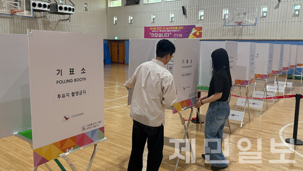 제21대 대통령선거 사전투표를 하루 앞둔 28일 오후 제주시 한라체육관 보조경기장에서 선거관리위원회 관계자들이 투표소를 설치하고 있다. 김은수 기자 김은수 기자 ibbni29@jemin.com 다른기사 보기 저작권자 © 제민일보 무단전재 및 재배포 금지 댓글삭제 삭제한 댓글은 다시 복구할 수 없습니다. 그래도 삭제하시겠습니까? 비밀번호 닫기 기사 댓글 0 댓글 접기 댓글입력 권한이 없습니다. 댓글 내용입력 비회원 로그인 이름 비밀번호 댓글 내용입력 댓글쓰기 계정을 선택하시면 로그인·계정인증을 통해 댓글을 남기실 수 있습니다. 회원 로그인 이름 비밀번호 자동등록방지 로그인 옵션 창닫기