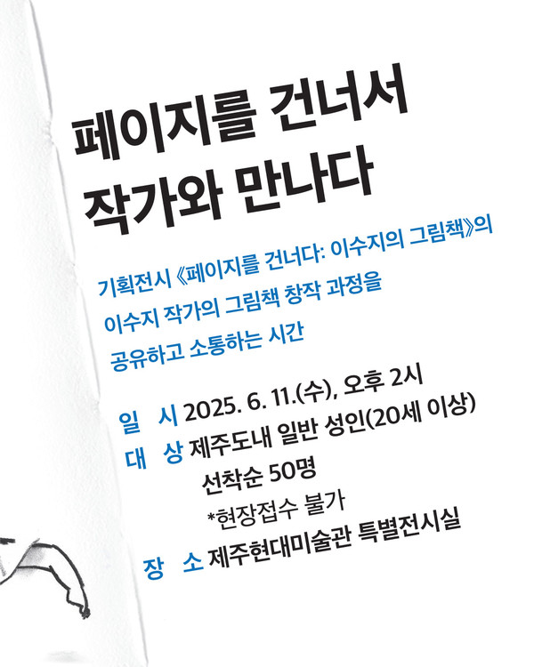 한편 기획전시 '페이지를 건너다'는 이수지 작가의 그림책 원화와 설치작품 등을 선보이는 전시로, 6월 29일까지 이어진다. 문의=064-710-7803. 김은수 기자