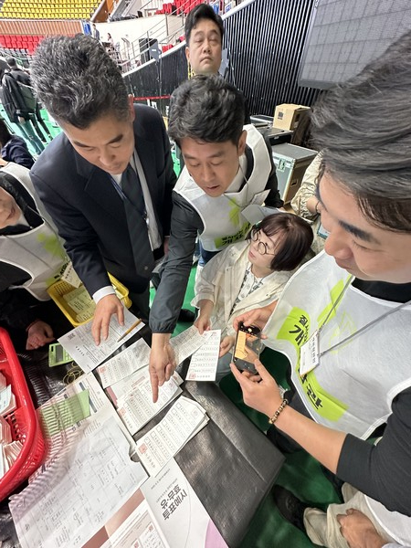 ○…3일 제21대 대통령 선거 투표가 종료된 직후 오후 8시 15분 제주종합경기장 한라체육관에 마련된 제주시 개표소에서는 무효표에 대한 참관인들의 항의가 잇따랐다.