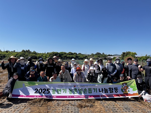 제주도관광협회(회장 강동훈) 소속 '사랑 나눔봉사단(단장 강옥선)'은 5일 제주시 구좌읍 김녕리 마늘밭에서 농촌 일손 돕기 봉사활동을 전개했다.