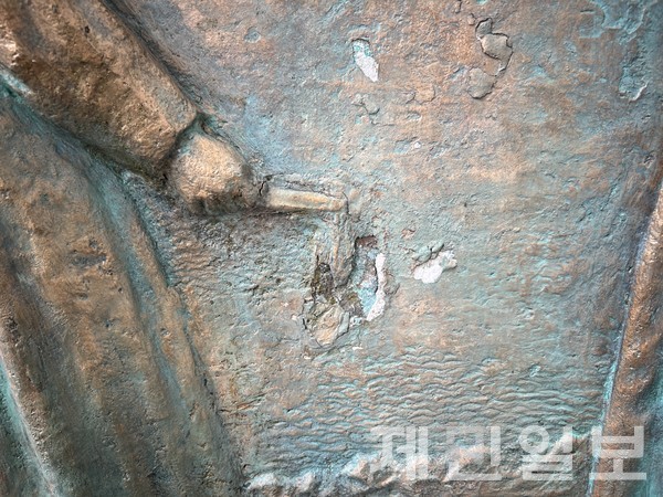 이날 의병항쟁 기념탑 주변에 설치된 일부 동상들은 페인트가 벗겨지고 조각이 깨져 오랫동안 사람의 손길이 닿지 않은 모습이었다.