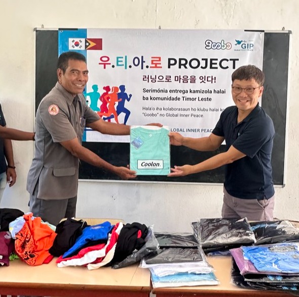 이번 기능성 의류 100여벌은 구보가 지난해 11월부터 진행한 '우·티·아·로(우리는 러닝 티셔츠를 모아 동티모르로 보냅니다)' 캠페인에 전국 각지의 러너들이 참여하고 택배 등을 통해 옷을 기부하면서 마련됐다. 단, 현지 아이들의 영양 상태 등을 고려해 일정 규격 이하로만 선별했다.