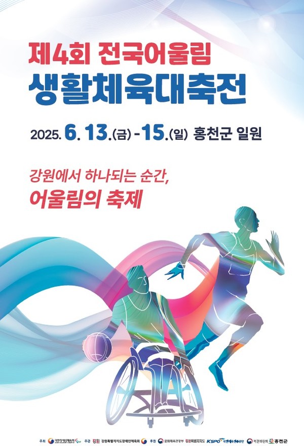 장애인과 비장애인이 함께 어우러지는 전국 최대 규모의 생활체육 대체전인 제4회 전국 어울림생활체육대축전이 오는 13일부터 15일까지 강원특별자치도 홍천군 일원에서 열린다.