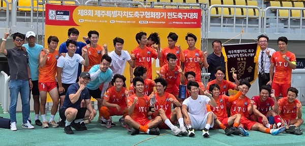 제주관광대학은 지난 21일 제주종합경기장 주경기장에서 열린 제8회 제주특별자치도축구협회장기 전도축구대회 겸 제106회 전국체육대회 선발전 제주국제대학과의 경기에서 2-1로 승리하며 2승으로 우승했다.