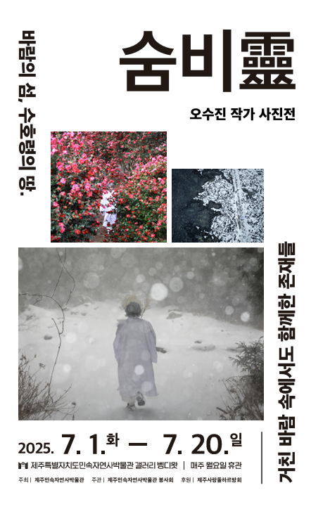 제주의 자연과 정신을 담아온 오수진 작가의 세 번째 제주 연작 사진전 ‘숨비령’이 제주민속자연사박물관 벵디왓갤러리에서 열린다.