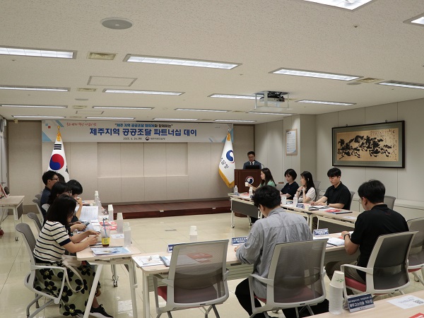 제주지방조달청(청장 방혜성)은 24일 청사 회의실에서 제주도, 제주도개발공사 등 10개 수요기관을 초청해 '공공 조달 협의체 실무자 간담회'를 개최했다.