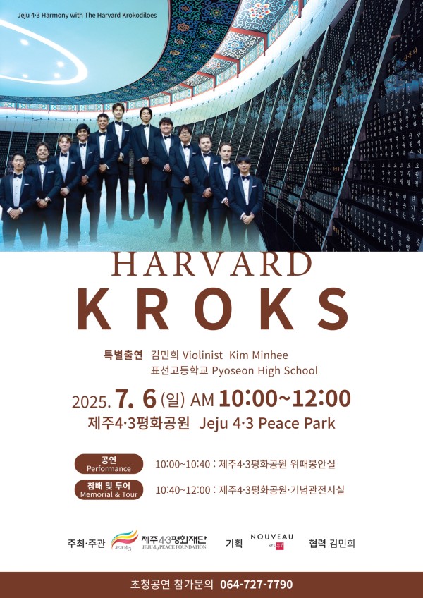 제주4·3평화재단(이사장 김종민)은 다음달 6일 오전 10시 제주4·3평화공원에서 하버드대 아카펠라 그룹 '크로코딜로스' 공연을 개최한다.