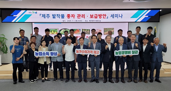 농협 제주본부(본부장 고우일)와 밭농업경쟁력강화협의회(회장 김군진 한경농협 조합장)는 1일 제주 환경에 맞는 밭작물 종자의 생산·보급 및 관리 방안에 대한 업무협의회를 개최했다.