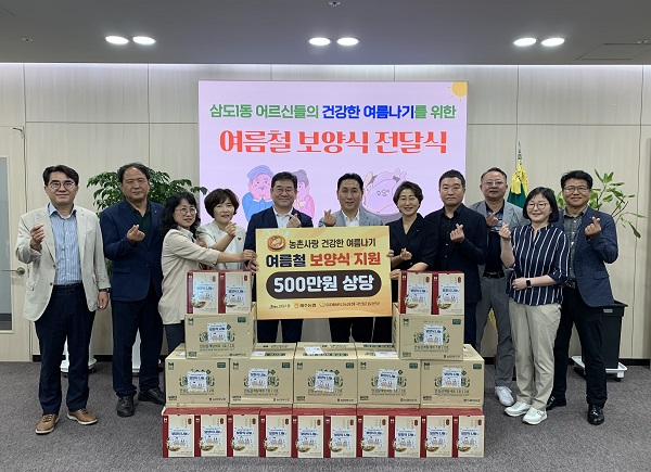 농협중앙회 제주본부(본부장 고우일)는 14일 제주본부에서 (사)NH도농상생국민운동본부의 지원으로 '농촌 사랑 건강한 여름나기 보양식 전달식'을 열었다.