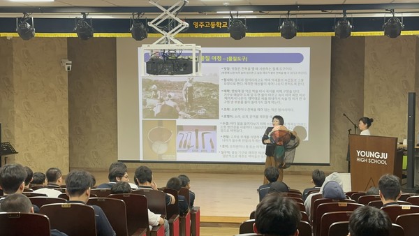 세계문화유산보존사업회(이사장 김택남)와 제주특별자치도가 공동 주최하고 제민일보(대표이사 오홍식)가 후원하는 ‘공동체로 배우는 제주해녀문화 - 불턱 아카데미’가 지난 17일 영주고등학교에서 열렸다. 이날 강연은 오영생 해녀전문가가 진행했으며 자신의 해녀 가족 이야기로 시작해 생생한 해녀의 삶과 문화를 들려줬다.