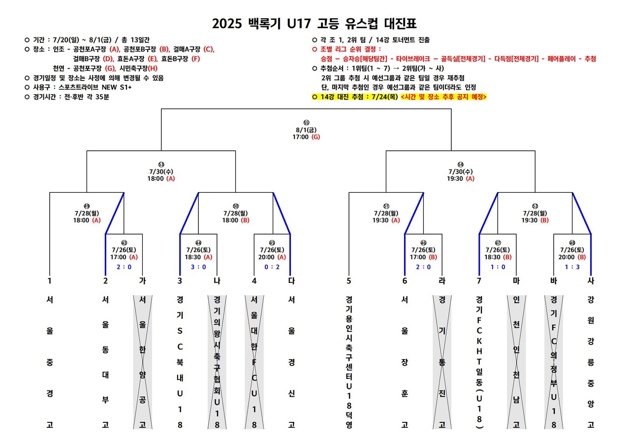 - [33회 백록기] U17 유스컵 8강(본선 2일차) 기록실