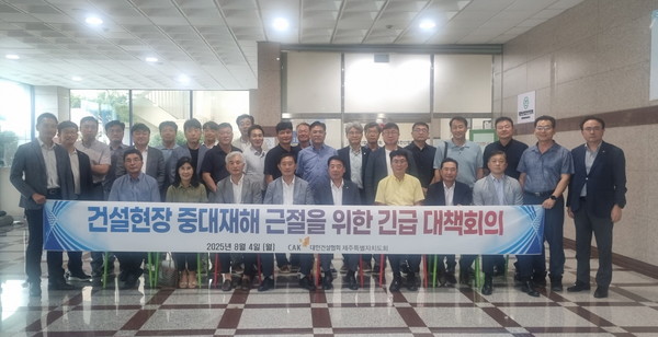 대한건설협회 제주특별자치도회(회장 김기춘)은 4일 건설회관 9층 회의실에서 중대재해 근절 및 건설현장 안전확보를 위한 긴급 대책 임원 회의를 개최했다.