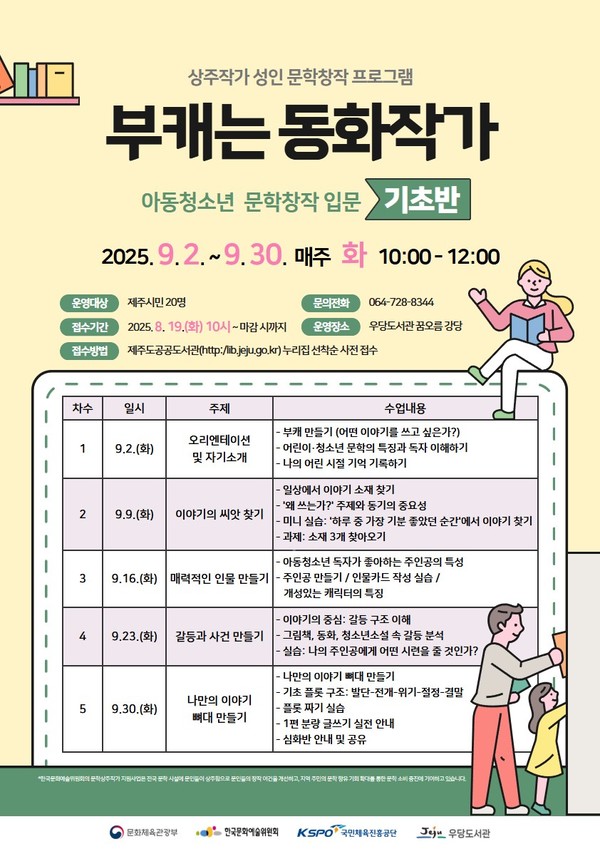 참여를 희망하는 제주시민은 8월 19일 오전 10시부터 제주특별자치도 공공도서관 누리집(http://lib.jeju.go.kr) 행사/프로그램의 도서관 프로그램 신청란에서 선착순으로 신청하면 된다. 문의=우당도서관(728-8344) 김하나 기자
