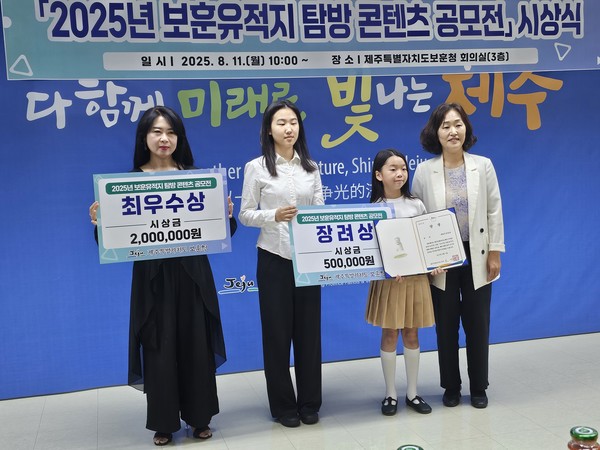 제주특별자치도 보훈청(청장 배태미)은 11일 보훈청 회의실에서 '2025년 보훈유적지 탐방 콘텐츠 공모전' 시상식을 개최했다.