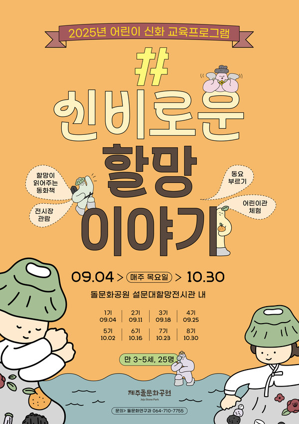 프로그램 신청은 8월 20일부터 제주돌문화공원 누리집(www.jeju.go.kr/jejustonepark)에서 선착순으로 가능하며, 세부 일정은 공지사항과 체험프로그램 메뉴에서 확인할 수 있다.