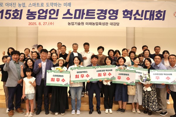 제주특별자치도 농업기술원(원장 고상환)은 8월 27일 미래농업육성관에서 '제15회 농업인 스마트경영 혁신대회'를 열고 100여 명의 농업인이 참여한 가운데 성황리에 마무리했다고 밝혔다.