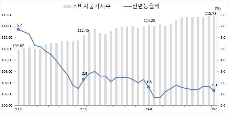 2일 통계청 제주사무소가 발표한 '8월 소비자물가동향'에 따르면 지난 8월 제주지역 소비자물가지수는 115.78(2020년=100)로 전년동월대비 1.3% 상승했다.