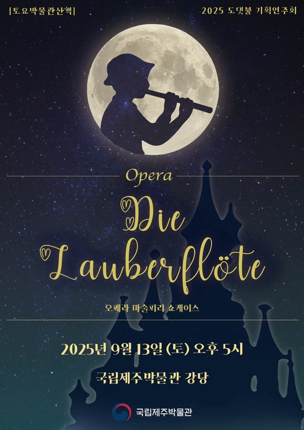 국립제주박물관(관장 김동우)이 '토요박물관 산책'으로 오페라 '마술피리' 쇼케이스를 13일 오후 5시 박물관 강당에서 선보인다.