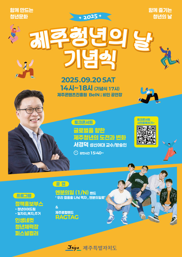 제주도는 20일 제주콘텐츠진흥원 비인공연장에서 ‘2025 제주청년의 날 기념식’을 개최한다고 8일 밝혔다.